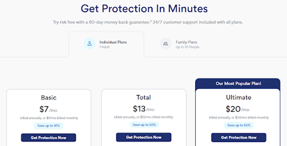 Aura knows digital information is shared with loved ones, so they offer plans for individuals and families which cover up to 10 people. Every plan comes with 24/7 customer support and up to $1M in identity theft insurance** which covers eligible losses and fees due to identity theft or fraud.