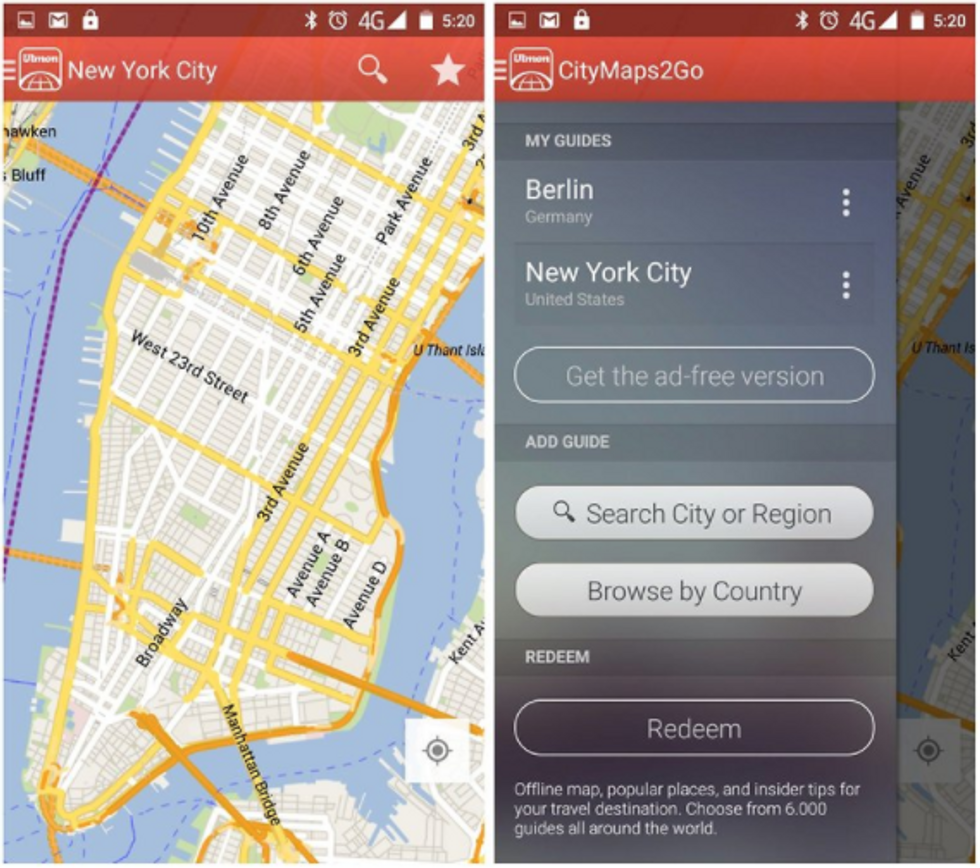 Both of these apps are fantastic for navigating without data. You can download city maps and use them without having to find wifi. You can look up where you are and it will direct you, and you can keep track of special locations like landmarks and your hotel.