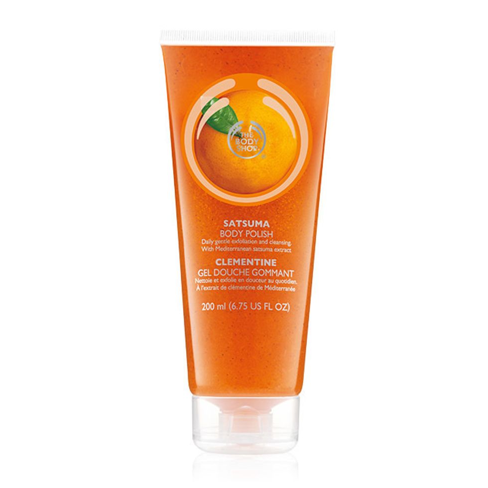 The vibrant orange-colored foaming gel formula of The Body Shop Satsuma Exfoliating Body Polish is unique and revitalizing and works like a charm when applied to dry and flaky skin in need of some TLC. Argentinian Satsuma oil moisturizes as you polish your skin pretty. Soft and touchable skin is a shower away when you treat your body to The Body Shop!