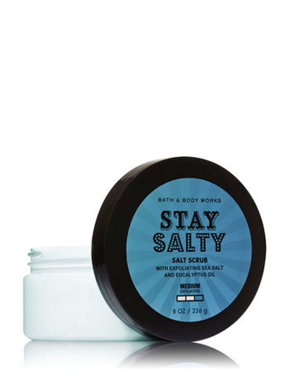 Sea salt and eucalyptus oil work together to exfoliate and rehydrate, making Bath & Body Works Stay Salty Body Scrub a skin-smoothing and soothing sensation. Just rub all over the skin while showering and rinse off to find refreshed and renewed skin that was waiting to shine from beneath the surface. Stay salty and sexy!