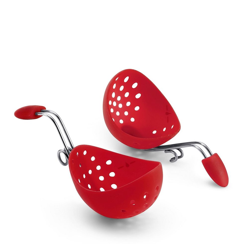 Poaching eggs can be a pain when you’re all thumbs in the kitchen. Such a seemingly simple dish isn’t so easy to make after all. Sure, TV chefs make poaching seem like second-nature, but for the rest of us, poaching with perfection takes practice. But why bother getting bummed out over boiling when the Cuisipro Egg Poacher can make breakfast a breeze? The 2-piece set helps you poach precisely every time. The silicone gadgets hook to your pot or pan and delicately cradle the eggs so they form their signature shape and poach to just the right consistency. You’ll be amazed at how nicely and consistently they come out every time. Get your toast points ready for some delicious dipping!