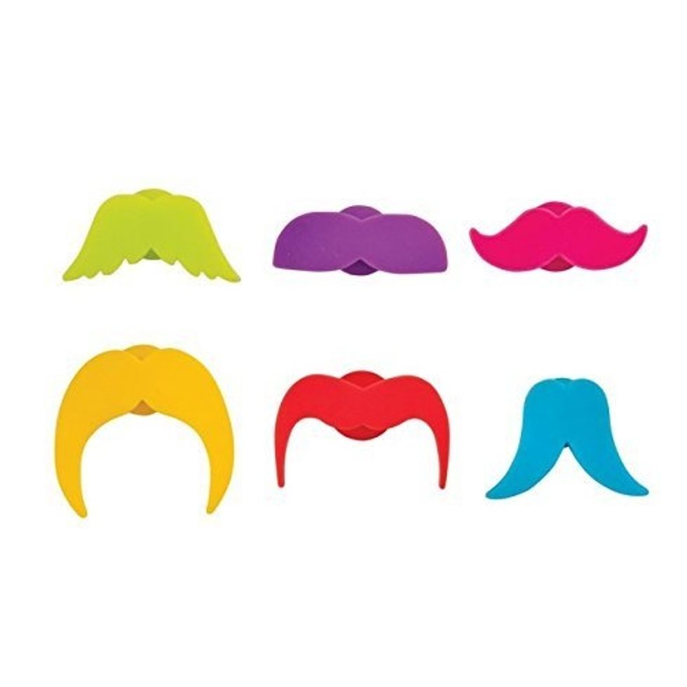 Never forget which glass is yours when you mark each wine glass with a quirky mustache. Wine Glass Charms / Drink Markers are fun and entertaining, with each one from the six-pack in a different color and mustache shape. Place one on the rim of a wine glass to identify the glass while making for some laughs as you take each sip. Made of durable silicone rubber, they are flexible and washable, and won’t damage the wine glass. Perfect for parties where merlot meets mustache with these adorable smile-making markers.